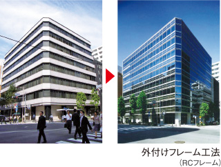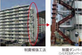 建物を使いながら、外部に制震ダンパーを設置して地震時の揺れを低減します。