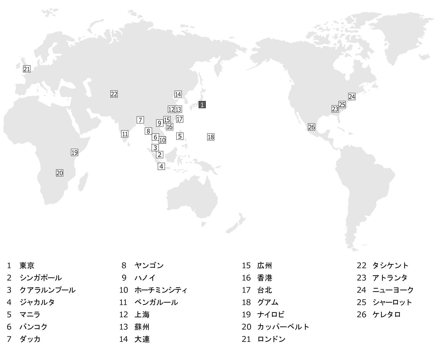 1970年代から海外に進出し、約60カ国で施工実績があります。 1974(昭和49)年にシンガポールに拠点を構えて以降は、東南アジアを中心に世界各国で、生産施設や超高層ビル、病院、橋、地下鉄などの建設に携わっており、各国の発展と人々の快適な暮らしに貢献しています。