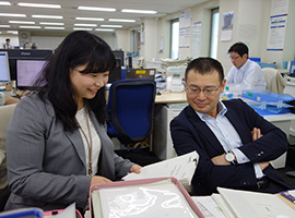 空気中の微粒子や微生物、化学物質等が高度に制御された空間(CleanRoom)の研究をしています。入社1年目に結婚、3年目に出産し産後2か月で職場復帰。夫が、たっての希望だった育児休業を1年取得しました。産休中の私は育児で精一杯でしたが、育休中の夫は育児に家事に自己研鑽に趣味に…と忙しくも活き活きしており感服しました。6年目の今は研究所での実験の他、現場測定や学会発表で国内外を飛び回ります。夫婦で出張や夜勤、残業を調整し、揃って保育園行事に参加したり交代で休んで子を看護したり、家族や個人の時間を確保したり、手探りながら互いの仕事と生活の調和に取り組んでいます。便利家電やベビーシッター、家事代行サービスも利用しつつ、私たちの今の働き方はスポーツベットはじめ夫の会社、同僚や上司の皆さんの理解に支えられています。