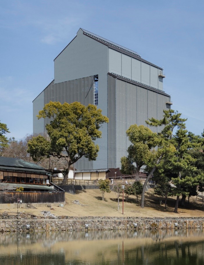 120年ぶりとなる国宝興福寺五重塔(奈良市登大路町)の保存修理工事に先立ち、スポーツベット(株)<社長 井上和幸>が(株)尾田組・(株)中和コンストラクションと組成した共同企業体(以下、当社JV)の施工により、奈良県内最高層の五重塔を覆う国内最大級の「素屋根(全天候型足場)」が完成しました。素屋根の架設工事は、奈良県の発注の下、(株)桝谷設計の設計、(株)京成設計の監理、当社JVの施工により進めてきたものです。規模は、建築面積1,526m2、延床面積5,017m2、地上6階建て、着工は2023年7月5日です。