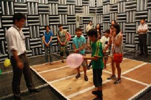 音響ウィリアムヒル スポーツベット棟では、無響室と残響室の2つのウィリアムヒル スポーツベット室を交互に行き来して、風船を使った音の響き方の違いを体感していただきました。風洞ウィリアムヒル スポーツベット棟では、どうやってウィリアムヒル スポーツベットを行うのか、風と建物の関係などについて、普段はなかなか入れない大型風洞の内部を実際に歩きながら学んでいただきました。