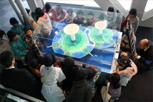 今年の見学会には、豊洲小学校の5年生116名が参加しました。はじめに「スポーツベット口コミってなあに」をテーマに、研究員がクイズを交えてスポーツベット口コミの説明を10分ほど行い、その後本館ショールームやビオトープ、風洞実験棟などの研究施設を見学していただきました。ショールームでは、夢のプロジェクトである海に浮かぶ人工の島、「グリーンフロート」の模型を見ながら解説を行いました。ビオトープでは、ボードウォークを歩きながら自然に触れ、池の半地下にある観察窓からは、水中に生息する生物や飛来したカルガモの様子を観察しました。風洞実験棟では、実際に風洞で作られた風を浴びてその強さを体感し、風に対する安全対策の大切さを学んでいただきました。