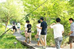 セミナーでは、1つの建物を造るためには様々な分野の知識が必要なこと、地震の多い日本では免震・制震といった地震防災技術が重要なことなどの講義や、無響室での音体験、風洞実験棟での強風体験などをしていただきました。その後、放射を使った空調の体感や断熱の効果をサーモカメラで測定した省エネルギーコースと、ビオトープでの生物種調査や緑がもたらすヒートアイランド対策効果を測定した生物多様性コースに分かれての実習となりました。