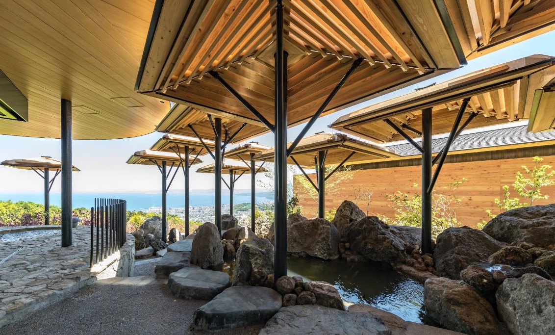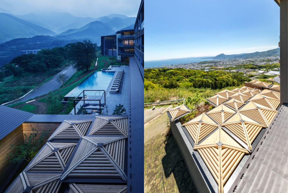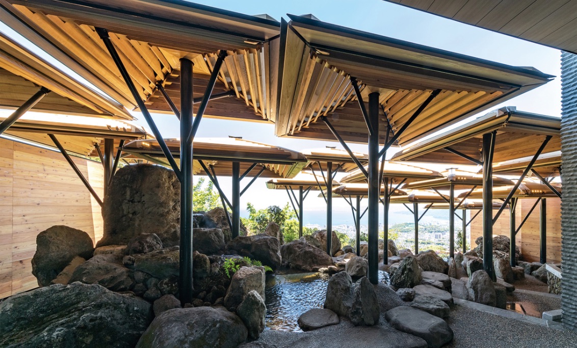 日本を代表する温泉地である別府に、世界各国からのエリートトラベラーを迎え入れるに当たり、「グローバルリゾートとしての設え」と「別府温泉らしさ」の融合を意識した設計としました。ここではデジタルデザインにより実現した露天風呂傘についてご紹介します。