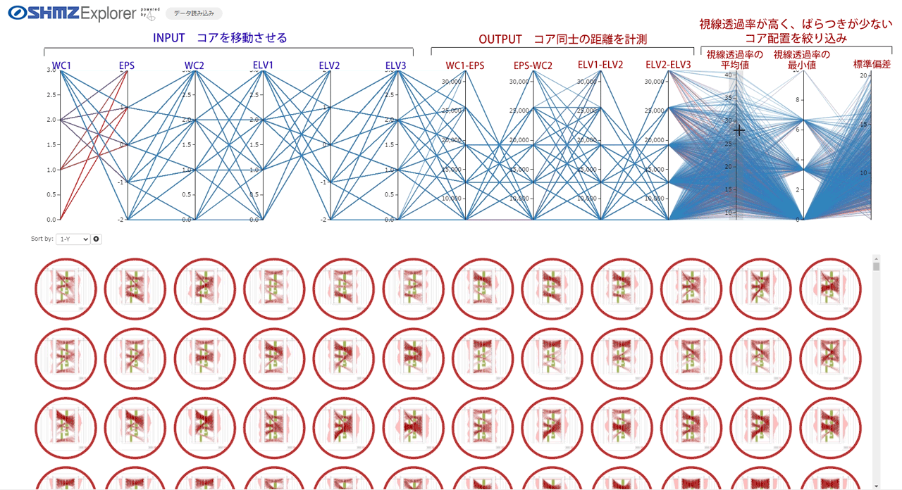 Shimz Explorerを用いて、視線が抜けるコア配置を絞り込み