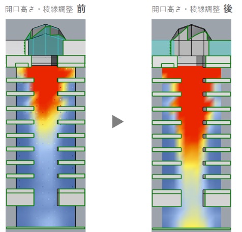 シミュレーション結果から仮定した、4枚の鋸屋根最高部の高さをパラメーターとして設定し、それぞれの開口高さを変化させ、スポーツベット 5チャンネル最下部での照度を解析により算出。その解析結果に対し、遺伝的アルゴリズム*3による600通り以上の組み合わせの最適化を行い、最も多くの光をスポーツベット 5チャンネル内部に導くトップライトの開口高さを見つけ出しました。