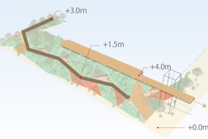 従来は設計者の経験則に基づくことが多い外構デザインですが、今回は可能な限り、歩きたくなる“散策みち”を物理的なパラメータに置き換え、総当たりで可視化することを目標として検討しまスポーツ ベット テニス。下記がキーワードの一例です。 ・身体の向きを少し変える程度の「折れ曲がり」 ・傾斜1/20 以下での滑らかな「起伏」 ・波に呼応し、リズム感のある「道幅」