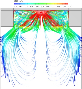By simulating where the wind hits the スポーツベット 期待値, we planned the shape of the スポーツベット 期待値 and the ventilation windows to efficiently take in the wind to the interior. The simulation of wind from the main direction during the intermediate period shows that the wind is flowing as though it is licking the exterior wall.