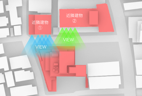 We used Grasshopper to solve the contradictory tasks of reducing the sight lines from neighboring buildings while keeping the communication area bright and also blocking direct sunlight. Using the value of the angle of the external fin as a parameter, we derived a pattern that reduces the line-of-sight entering the room. The annual average illuminance simulation is conducted at the same time. While blocking direct sunlight, we checked that comfortable brightness can be ensured with solely indirect light.