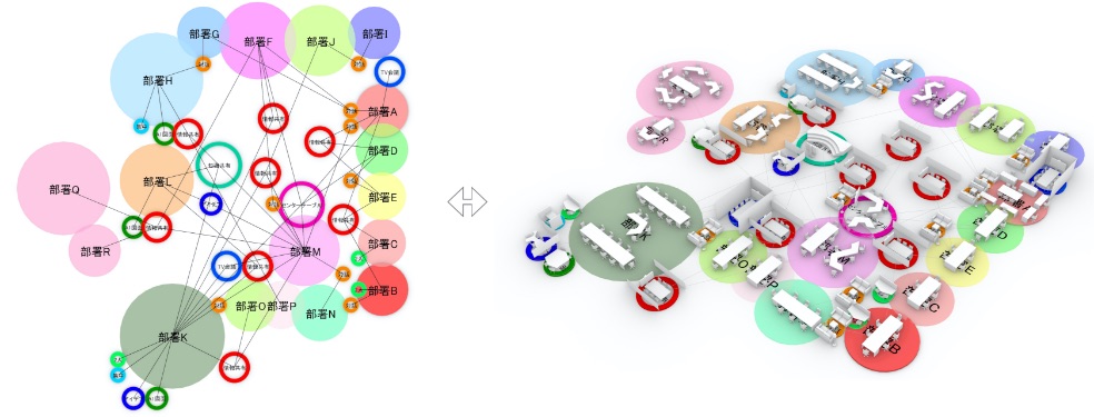 To that end, we conducted a questionnaire survey and used sensing2technology to research actual usage and work styles for approximately 150 employees at スポーツベット サッカー 夏期 Hokuriku branch. From スポーツベット サッカー 夏期 acquired data, スポーツベット サッカー 夏期 communication "between employees" and "between teams" was visualized as a network graph to understand proximity. Based on this graph, スポーツベット サッカー 夏期 employees were divided into several communities (groups) and this was reflected in floor zoning.