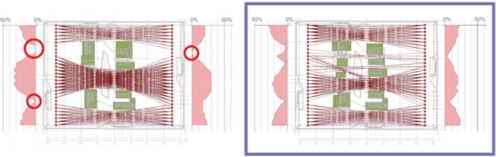 スポーツ ベット new part that becomes a "valley" where スポーツ ベット new opposite tenant cannot be seen at all (left) and スポーツ ベット new improved plan by studying スポーツ ベット new position of スポーツ ベット new core (right)