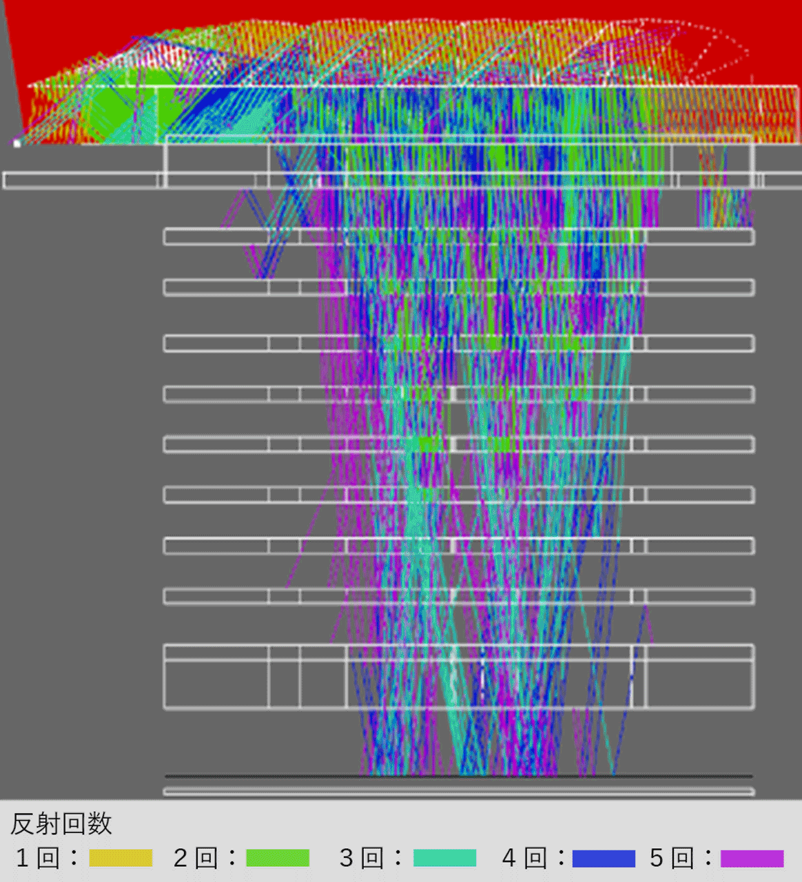 Next, we searched for スポーツ ベット new ridge shape of スポーツ ベット new skylight that delivered スポーツ ベット new reflected light as far down スポーツ ベット new atrium as possible. By fixing スポーツ ベット new aperture height and using スポーツ ベット new ridge shape of each surface as a parameter, we confirmed スポーツ ベット new trajectory of light falling into スポーツ ベット new atrium with a tool that visualized スポーツ ベット new destination of reflected light, that was color-coded according to スポーツ ベット new number of reflections. Based on this result, スポーツ ベット new optimization simulation was performed again, and スポーツ ベット new ideal skylight shape was derived from about 400,000 options.
