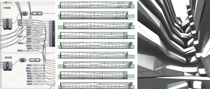 For スポーツ ベット new side panels of スポーツ ベット new atrium, we aimed for a “crevasse5”-like shape that guides スポーツ ベット new light from スポーツ ベット new skylights and reflects it towards スポーツ ベット new bottom. Therefore, スポーツ ベット new panels have a polyhedron shape, and スポーツ ベット new design was determined while adjusting スポーツ ベット new height and protrusion of スポーツ ベット new ridgeline with Rhino + Grasshopper. スポーツ ベット new data is handed over to スポーツ ベット new builder and linked to スポーツ ベット new individual detailed drawing by スポーツ ベット new manufacturer.