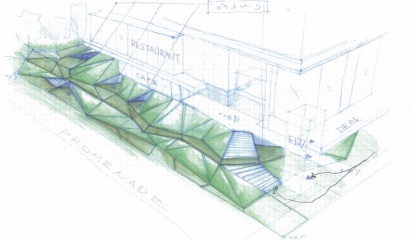 Not only in the display, but also the candidate proposals are instantly output by a 3D printer and the shape is confirmed. Before the final approval, we explored what the waveform pattern would look like in a real environment by creating a full-scale mockup in the project site.