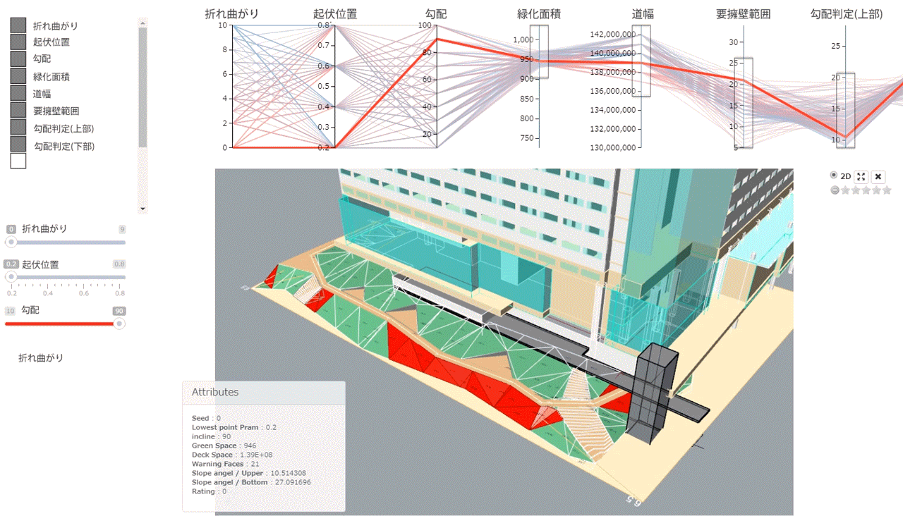 The variables propagated above were integrated via Shimz Explorer1 to generate a huge number of patterns. The process of then picking, evaluating, and adjusting them using the designer’s eye, can be seen as a digital enhancement of the good parts of the traditional スポーツ ベット ログイン process. We decided on the スポーツ ベット ログイン while debating which of the various indicators to trade off.