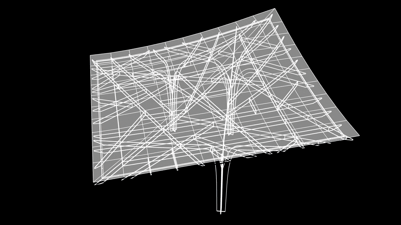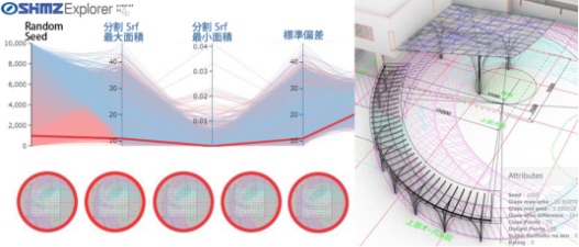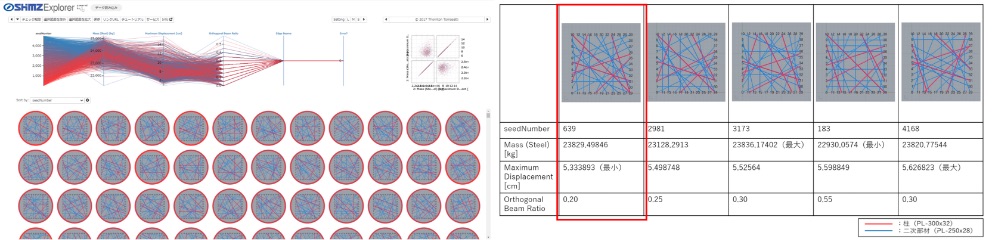 After setting the positions of three columns as constraints (depending on the vehicle path), we created a parametric model in which the thickness / strength of the steel plate, the main axis direction of the columns, and the horizontal angle of the beams were set as スポーツベット ライブ variables. Karamba, a structural analysis plug-in, was linked to the parametric model to build a system that can instantly check structural performance in response to changes in the structural frame shape. Additionally, we set the amount of vertical deformation and the minimization of the total steel weight as objective functions and used a genetic algorithm to search for a structural frame that satisfies these スポーツベット ライブ objectives, from more than 5,000 cases.