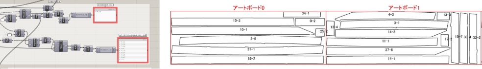 We built a program that automatically exports 2D data using Rhinoceros + Grasshopper and linked this data to the steel frame production drawings. These framework drawings were linked with the steel plate cutting data and used to create an efficient cut plan with good yield. Even when the results of the seismic response analysis called for additional changes to the members, we were able to effortlessly issue the framework drawings for these additional parts. At the factory manufacturing stage, we used the digital data to control the accuracy using the coordinate values of the machining reference points as control values.