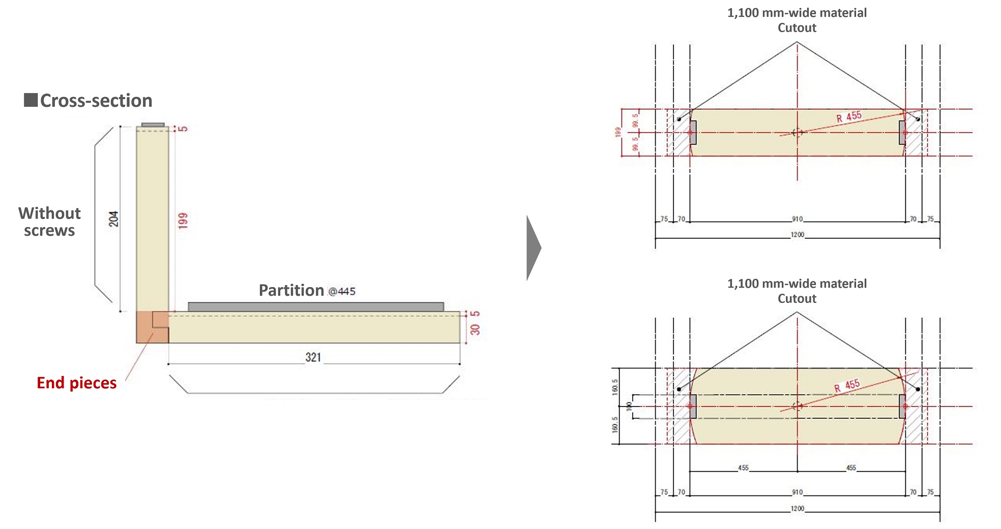To conserve resources, wooden benches from demolished existing buildings, scheduled to be thrown away, were used. The seat and backboard were disassembled to minimize waste and upcycled into two types of スポーツベットio つながらない with different depths.