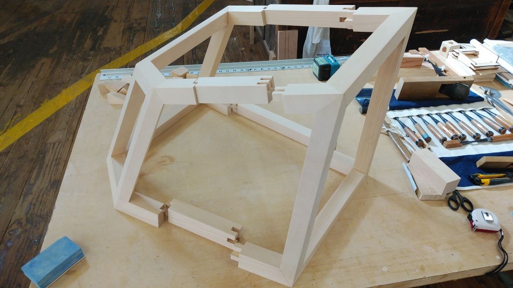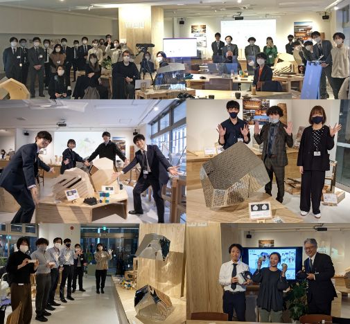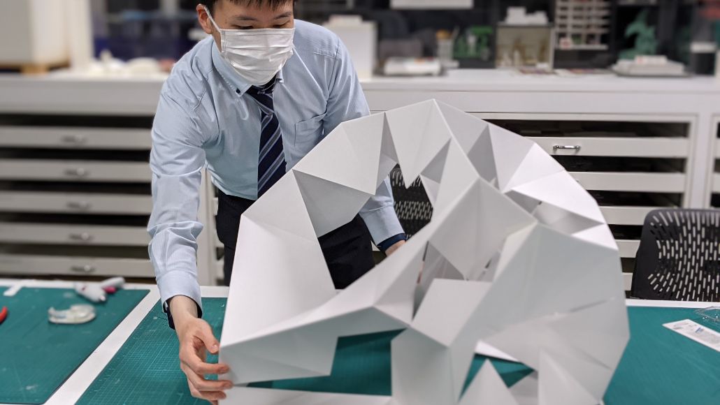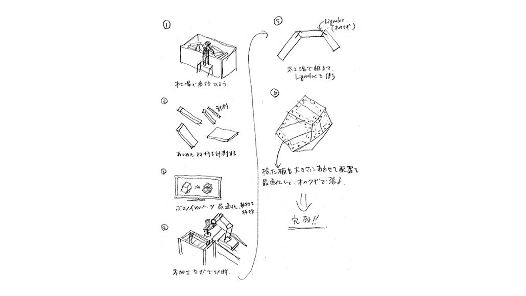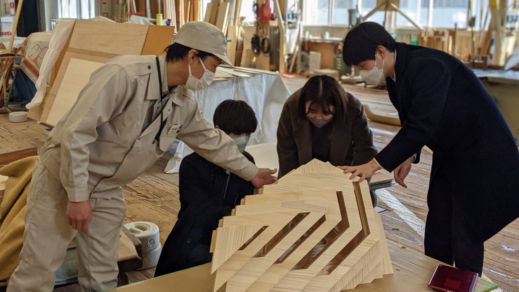 Nature Architects 「聞いている方まで楽しくなり、実際につくるという行為の大切さを感じた。コンピュテーショナルデザインというとパソコンの中で完結してしまいがちだが、実際にものをつくることで、自然の素材をデジタルに落とし込む難しい部分などを経験できたと思う。通常は、線材や面材を分割してエッジを表現することが多いが、折り紙で建築を表現するようなチャレンジが木の加工技術とデジタルとの組み合わせでできれば面白いのではないかと思った」