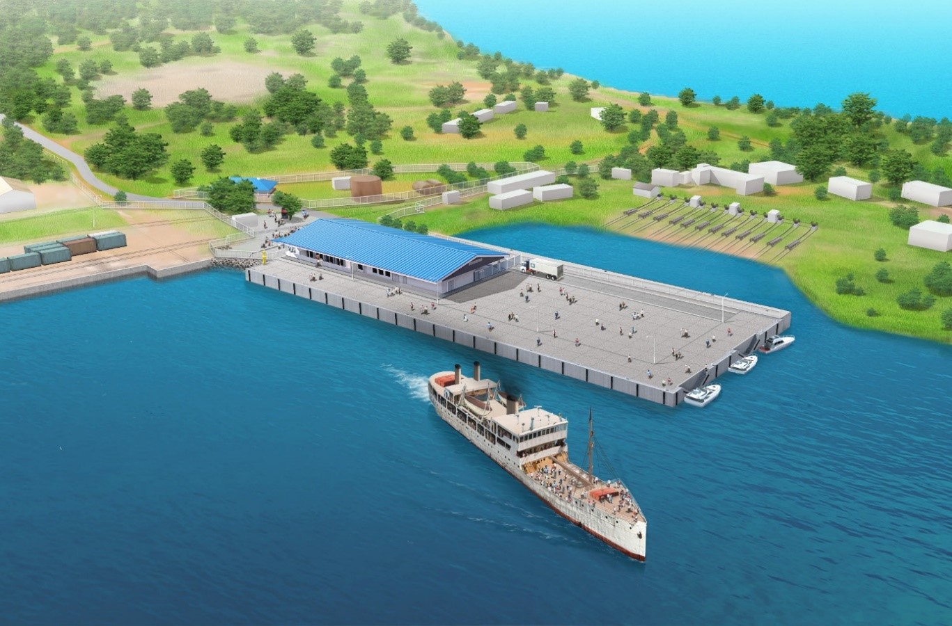 | Construction details | Passenger wharf extension (130m long, 50m wide), passenger terminal building (Single-story, 1,500m2), Access road (concrete pavement, 480m long), etc. |
