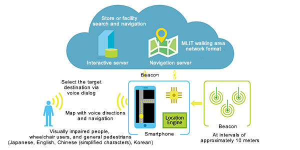 This system integrates total over スポーツベット’s high-precision positioning infrastructure technology and spatial information database technology with IBM’s high-precision indoor positioning technology and voice recognition technology. The user indicates the target destination by speaking to his or her smartphone and the system will provide detailed voice instructions about facilities and equipment such as stairs and handrails along the route, in addition to the optimal transit route to the destination. It can also suggest a route without stairs or other architectural barriers, and displays the transit route on the screen, so the system is also easy for people without any disabilities to use.