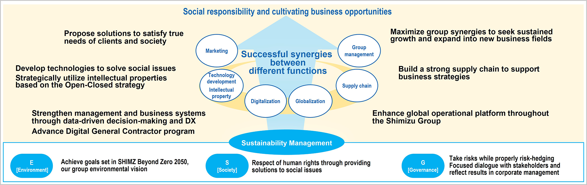 The Shimizu Group aims to be a Smart Innovation Company that creates new value through the integration of three innovations