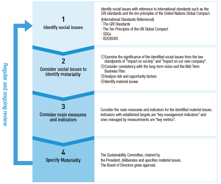 We have long developed KPIs that incorporate an environmental, social, and governance (ESG) perspective, and in 2022, we identified our スポーツ ベット ログイン. In addition, we have formulated major measures and metrics/targets for realization of these KPI, and we disclose our performance against them. Furthermore, we conduct annual re-views based on social trends and alignment with our management strategy. In FY2024, we conducted a review in line with our Mid-Term Business Plan 〈2024-2026〉.
