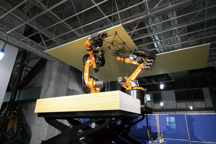 The dramatic decline in the number of highly skilled technicians in the near future is a concern for the construction industry. This will require improvements in productivity and the working environment to recruit the next generation of workers. In response to these conditions, in 2016 Shimizu began development of Shimz Smart Site, a next-generation construction production system that enables collaboration between human workers and robots. The Robotics Laboratory in the Institute of Technology developed autonomous control technology and will apply the learnings from the high-rise hotel job site in Shin Osaka to new job sites.
