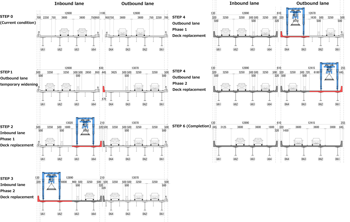 ①Deck Replacement Using Half-Section Construction: Sugegaya Viaduct