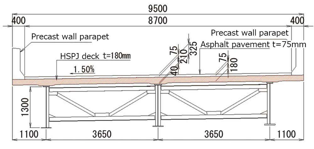 Structural type Steel simple composite plate girder 入金 不要 ボーナス スポーツ ベット for live load 入金 不要 ボーナス スポーツ ベット length 21.0 m Total width 9.5 m Deck work 183 m2 (HSPJ deck) Parapet work 42 m (precast wall parapet) Main girder reinforcement work 3.5 t