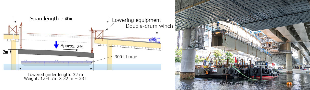 Concrete deck slabs and wall parapets were cut into large blocks for removal, with the newly developed Deck Cool Cut Method also tested in certain areas. Steel girders were dismantled by suspending and lowering entire large blocks using barges. Despite the severe working conditions, including being adjacent to an operating expressway and above the Nihonbashi River, which remains active for river traffic, the project was completed safely and on schedule. 入金 不要 ボーナス スポーツ ベット was honored with the and the 2024 Zenken Award from the Japan Construction Engineer’s Association.