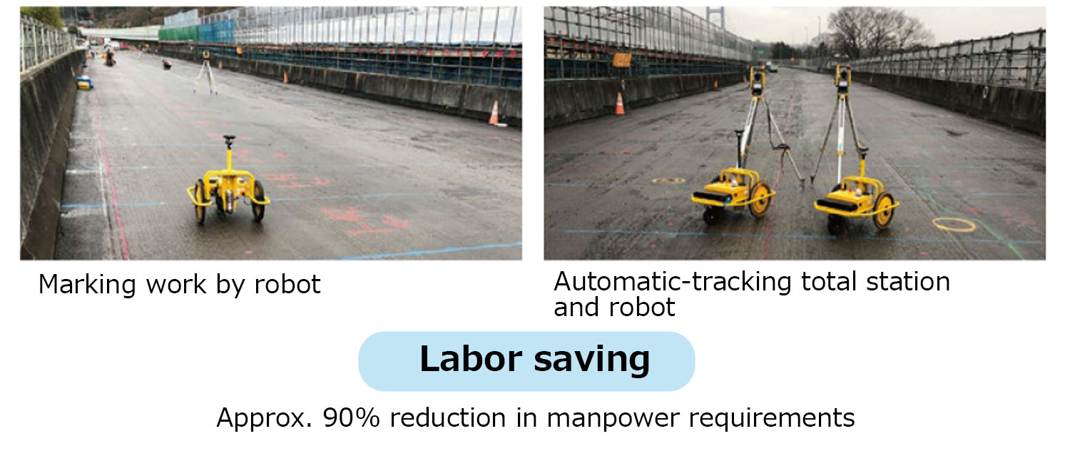 To enhance efficiency in marking out cutting lines on existing decks, 入金 不要 ボーナス スポーツ ベット introduced the automatic marking robot “Tiny Surveyor.” The system increases productivity in marking operations by approximately 90 percent.
