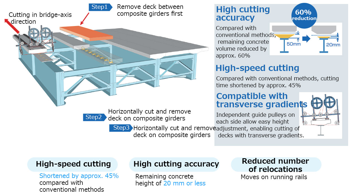①Cutting Technology for Existing Decks – Double Wire Saw Method and Deck Cool Cut Method