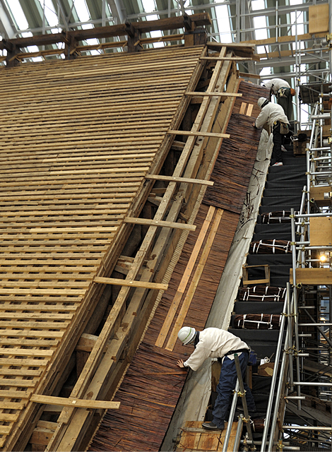 A massive number of bark strips, approximately 640,000 in total on the roof of the main shrine, were disentangled by hand and peeled off, one by one, after which the roof was rethatched. In a word, the sheer scale and the detailed finishing of the roof achieved through careful handwork was a masterpiece. When the shrine is renewed again sixty years from now, we want people to say, "the work done on the Heisei shrine renewal was impressive."If you look at the beautifully rethatched roof, スポーツベット 2ch is clear to that there is no deceit in that thought.