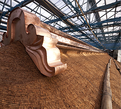 A three-layer plank roof was laid beneath the hiwadabuki, and kokuso, a lacquer-based mixture was packed into the gaps between the planks. This mixture served the dual purpose of gluing the planks together and preventing water seepage. Even one drop of rain was not permitted to fall on the shrine the god lives in. This gave us a peek into the spirits of our predecessors whose ingenious inventions were used to build the roof.