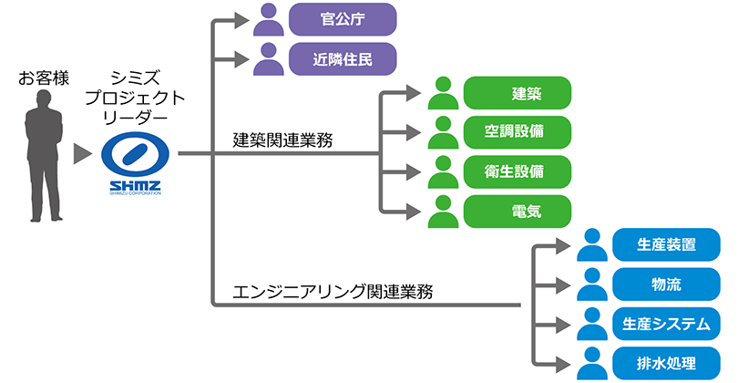 工場建設は、多岐にわたる技術領域、複雑な内容、膨大な作業量、社内外の多くの関係者との調整が必要な大プロジェクトです。プラントを主体とし機械、電気、情報、化学など様々な関係領域のプラント系エンジニアと、建築、建築設備の建築系エンジニアが集結し一体となってプロジェクトが進みます。 プロジェクト成功には、プラントの内容、お客様の生産プロセス・作業内容などを熟知し、構想段階から本格稼働まで社内外も含め関与する多くの関係者間の調整を行い、スケジュール通り、予算通りに進捗を管理しスムーズに進めていくマネジメント(プロジェクトマネジメント)がプラントエンジニアリングに求められます。 スポーツベット 野球ズでは、医薬、食品等それぞれの生産施設のプロジェクトで培った豊富な経験と専門知識を持つプロジェクトリーダーがマネジメント能力を発揮し、円滑に効率的に進めプロジェクト計画を早く実現します。