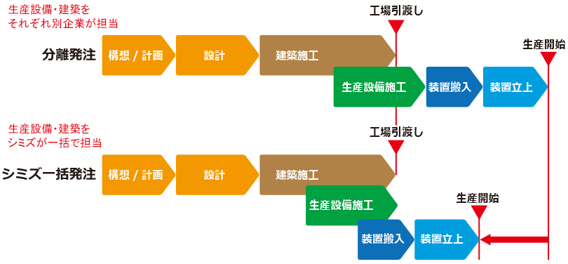 通常別々に進められる生産設備と建築の工事をスポーツベット 野球ズは一体で担当するので、建築工事中でも可能な限り、生産機器の搬入や生産設備工事、ユーティリティ設備工事、試運転を同時に進める効率的なスケジュールで施設を立ち上げて、早く生産を開始できます。