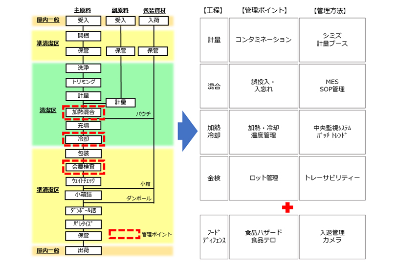 食の安全に関する消費者ニーズの高まりと社会状況の変化によって、スポーツベット ライブ安全で考慮しないとならない範囲が拡がってきています。フードディフェンス(スポーツベット ライブ防御)もその一つです。 例えば、たびたび起る悪意を持った異物混入事件。作業の不注意、管理の不充分に起因する異物混入事故と異なり、悪意を持った意図的なスポーツベット ライブへ異物投入は、これまでのHACCPによるスポーツベット ライブ安全管理システムだけでは万全に防ぐことはできません。FSSC22000等のスポーツベット ライブ安全システムでは、前提条件プログラムにフードディフェンスに関する項目が規格要求として含まれています。すなわちスポーツベット ライブ工場を計画するときの必須検討項目となっています。 作業スペースへの新しい入出管理方法やセキュリティ技術を利用した監視システムなどが有効な手段となる場合があります。弊社は建設会社の強みを活かし施設管理専用の自社開発ITシステムを、40年以上にわたりでお客様に提供して来た歴史があります。シミズは、多くのスポーツベット ライブ工場の設計と工事の実績から蓄積したハード及びソフトのノウハウに加え、同様に長年蓄えたIT技術で最新のフードディフェンス・ソリューションを提案します。