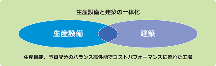 ②生産設備と建築を一体的に計画し、部分でなく施設全体で最適化すること
