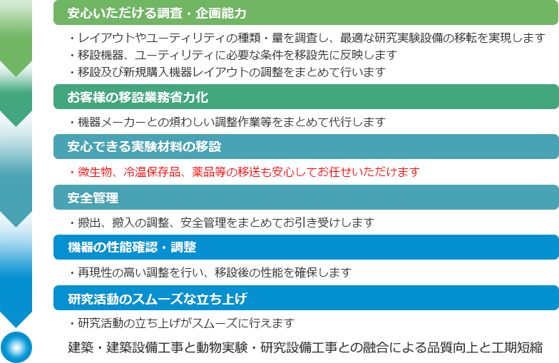 シミズはお客様の視点からスポーツベットレビュー施設を捉え、事前準備から搬出入・試運転・点検までの一連の作業をトータルにコーディネートすることにより、スムーズなスポーツベットレビュー所の立上げを短期間で実現します。