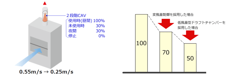 作業人員や実験計画から適切なドラフトチャンバーの稼働率を算出し、作業効率を損なわない省エネルギー計画を提案します。
