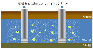 ベンゼンや油で汚染されたスポーツベット 入金不要や地下水に対して、マイクロ・ナノレベルの微細な酸素気泡を含有した栄養剤を地下水中に注入することで、好気性微生物を活性化させて汚染物質を分解する原位置浄化技術です。従来のスパージング処理技術に比較して、地上のガス回収設備が不要であり、短期間に低コストで浄化できます。