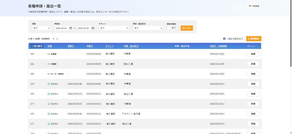「建物管理業務が効率化された」と好評をいただいています。 特に各種設備管理がアプリ経由で操作できることが、業務の効率化につながっているようです。 例えば空調や照明の設定変更も、sumou スポーツベット-Coreを活用すれば効率化が可能です。 従来は、テナントの方から電話で空調や照明のスケジュール変更の依頼を受け、ビル管理側で都度設定を変えていました。 sumou スポーツベット-Coreではテナントの方自身で空調や照明の設定変更ができるため、こうした個別対応がほとんど不要になりました。 また「電子申請機能が便利」という声もいただいています。 入居時の作業申請・搬入届け・撮影許可など、これまで電話やメールで一対一でやり取りしていた申請業務が、アプリ上で一元管理できるようになりました。 情報の引き継ぎや申請履歴の振り返りもアプリで簡単にできるため、ビル管理側もテナント側も負担が大きく軽減されています。