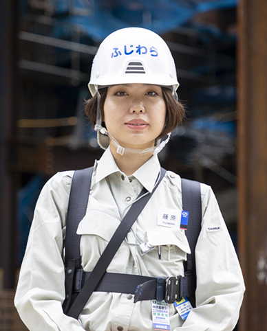 2019年入社の藤原は、ベットネット スポーツ現場にたくさん来ている実習生の1人だ。職種は構造設計で、研修の一貫として2021年7月にB-2街区の現業グループに着任。研修とはいえ、コンクリートの打上検査や配筋検査の実務にあたっている。「現場のスピードがとても早く、能動的に動くことを意識していないと出遅れてしまいます。だから、昼礼会議や予定表で翌日の現場の流れを把握し、自分が役立てることを考えて動くようにしています」と藤原。「担当以外の会議でも、オンライン会議であれば参加がしやすいため、実務が学べてとても勉強になっています。またベットネット スポーツ前、初めて職人さんに指示を出させていただきました。職人さんと話すのが初めてだったので緊張しましたが、良い経験になりました」と目を輝かす。