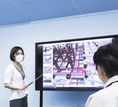 ここでの指示に役立っているのがグループチャットだ。「部下の仕事量を見ながら仕事を割り振ることが、上司として非常に大事な役割だと思っています。工事の担当、役割分担が曖昧であると、計画や問題への対応が遅れ、工事が遅れる原因になることもある。グループチャットで指示を出せば、その人が責任を持って仕事に取り組めるし、誰が何の仕事をやっているか、チームで情報共有できます」と有坂。こうした気配りが、部下がのびのび活躍できる環境をつくっている。