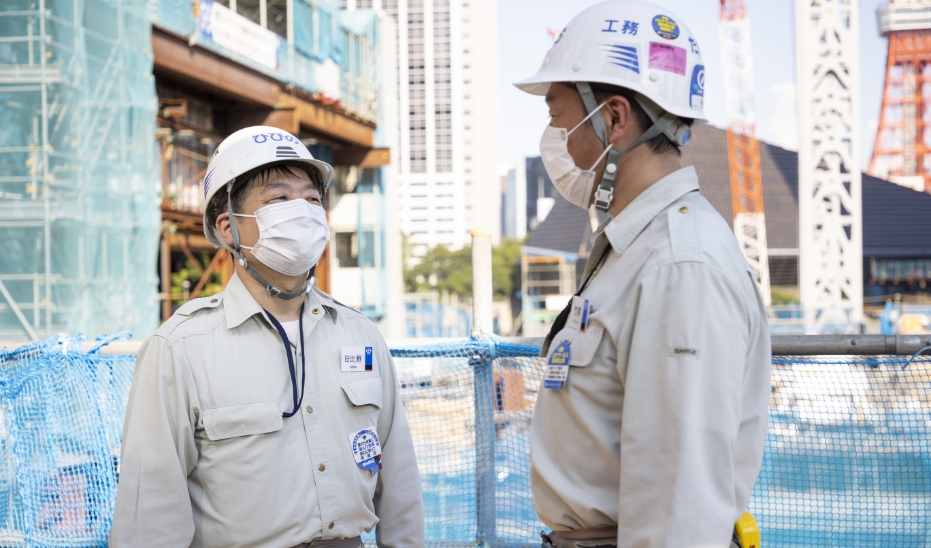 副所長はプロジェクトを円滑に進めるための潤滑油であり、各街区や関係各所との調整に日々走り回っている。「私の週間予定は設計者との打ち合わせが主です。私が取りまとめている工務グループでもさまざまなチームが同時進行で動いており、それぞれの分科会で設計者との打ち合わせがあります。本事業をリードする森ビル様は最後の最後までより良いものをつくるための検討を続けるディベロッパーです。さまざまな検討事項を共に創り上げる気持ちで臨み、信頼関係を積み重ねていきたいと思っています」と竹原。