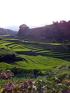 棚田の雰囲気が出ていていいです。ただ、構図全体に棚田の段々が配置されるように、できるだけ上から撮ったり、場所を変えてみながら撮影すれば、さらにいいと思います。