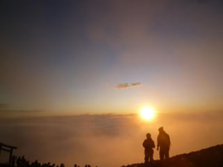 御来光と手前の朝モヤの中に見える二人のシルエットが、いい雰囲気を出していますね。あとは、左下の鳥居や人々がもう少し見えていたら、その場の雰囲気が伝わってよかったですね。