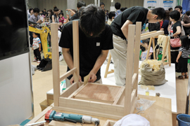 技能五輪メダリストによる家具製作の実演