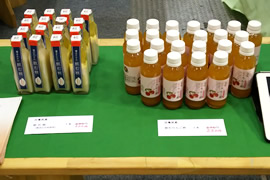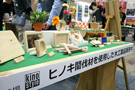 ブースでは、スポーツベット テニスの間伐材等で製作した東京木工場オリジナル木工製品「kino style」や村の特産品(リンゴ、米、ドリンク、木工製品)を販売したほか、グリーンバリュープログラムの取り組みについてパネルや資料で紹介しました。